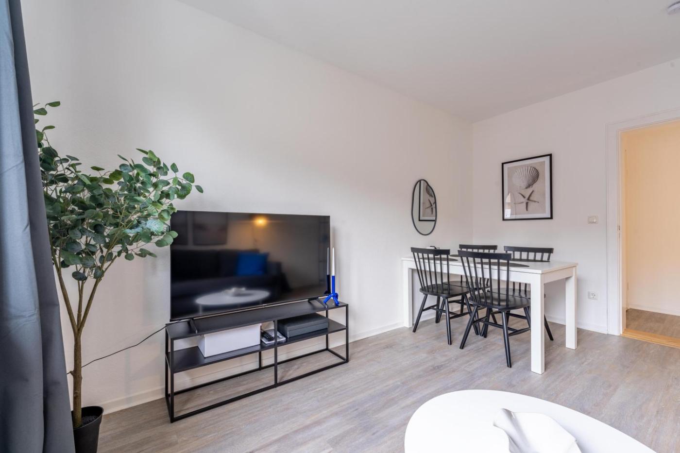 Apartment mit 2 Schlafzimmern. This spacious apartment is comprised of 1 living room, 2 separate bedrooms and 1 bathroom with a bath and a hairdryer. The apartments kitchen, which has a refrigerator and a dishwasher, is available for cooking and storing food. This apartment features a washing machine, a tea and coffee maker, flat-screen TV with streaming services, as well as chocolate for guests. The unit offers 3 beds. ;