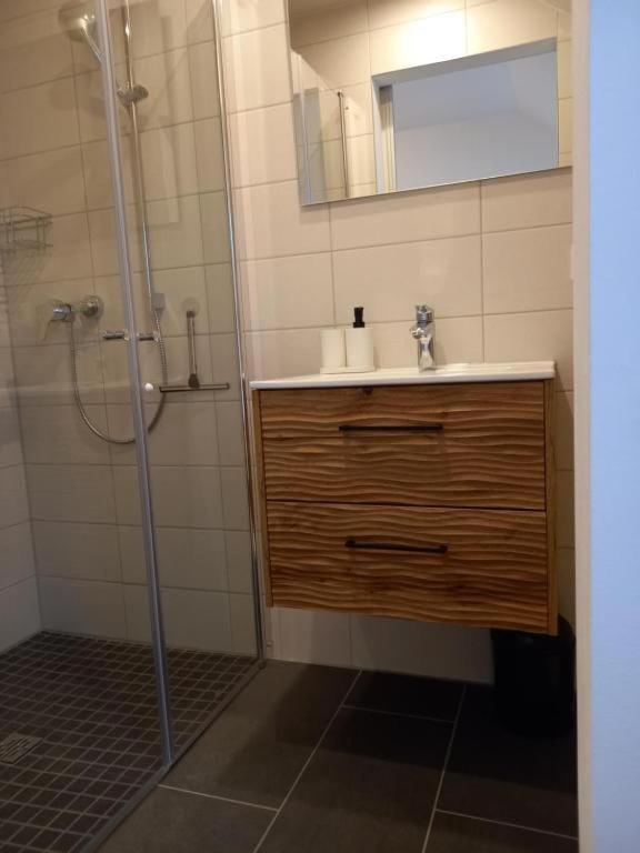 Doppel-Zweibettzimmer mit eigenem Bad. The twindouble room offers an electric kettle, tumble dryer, as well as a private bathroom boasting a walk-in shower. In the kitchenette, guests will find a stovetop, a refrigerator, kitchenware and an oven. The twindouble room has tiled floors, a seating area with a flat-screen TV with satellite channels, a washing machine, soundproof walls, as well as a wardrobe. The unit has 2 beds. ;
