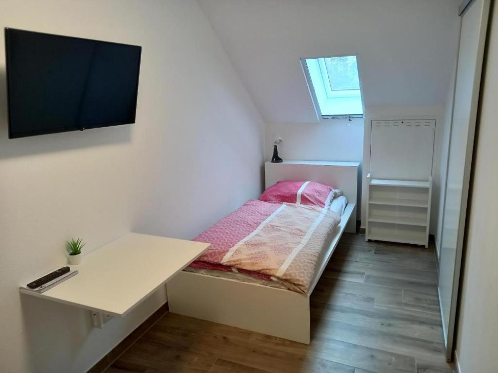 Einzelzimmer mit eigenem Bad. The single room provides an electric kettle and tumble dryer, as well as a private bathroom featuring a walk-in shower. Guests can make meals in the kitchenette that is equipped with a stovetop, a refrigerator, kitchenware and an oven. The single room features tiled floors, a seating area with a flat-screen TV with satellite channels, a washing machine, soundproof walls, as well as a wardrobe. The unit offers 1 bed. ;