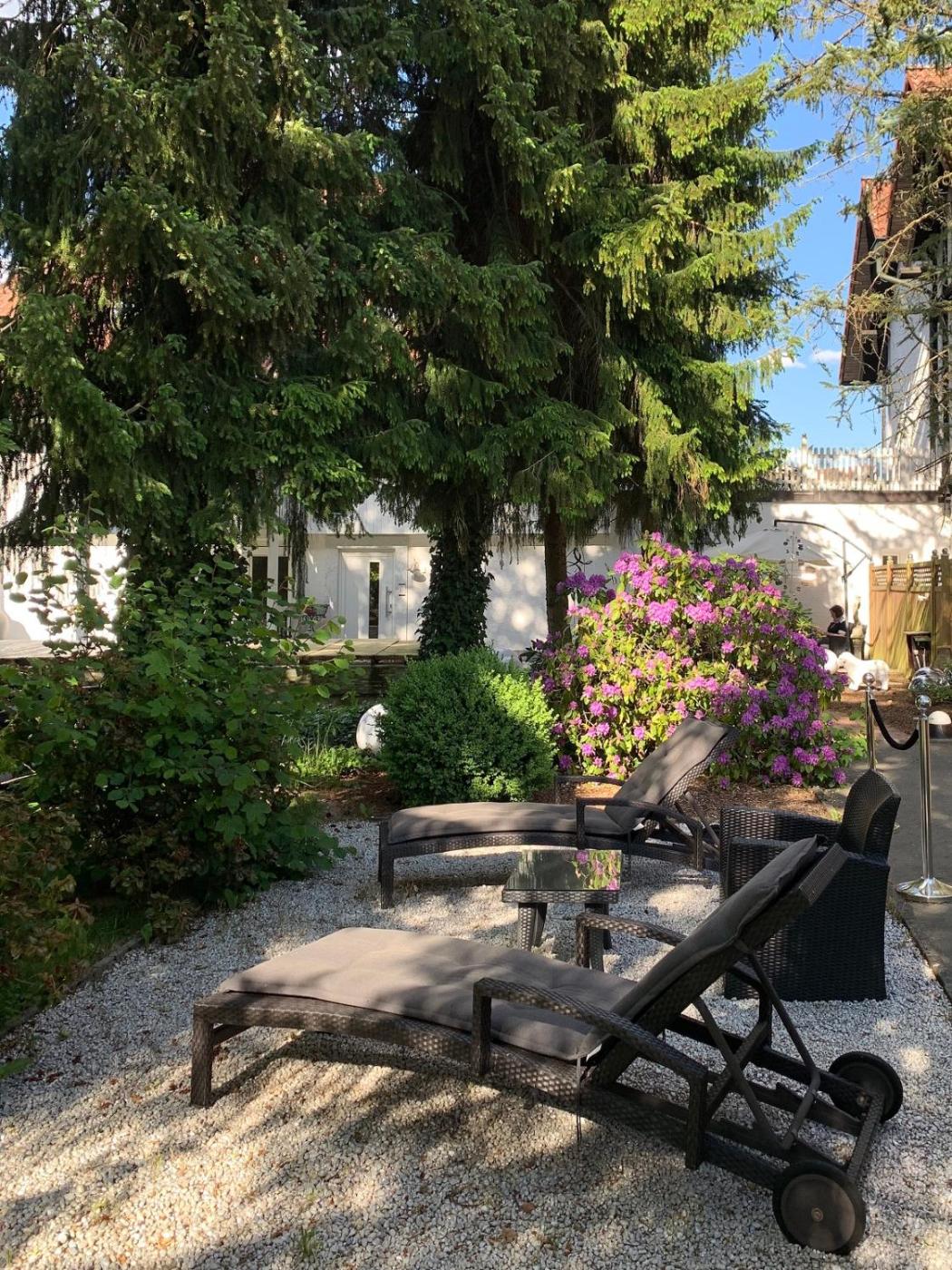 Apartment mit Terrasse. This apartment has a kitchen, balcony and garden view. ;