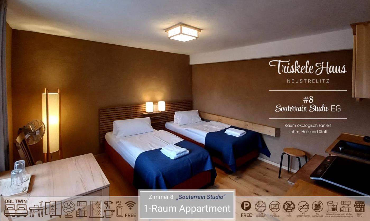 Die Unterkunft Triskele Haus - Ökologisches Gästehaus der Heilstätte Strelitz, die in Neustrelitz, 34 km von Bahnhof Neubrandenburg entfernt gelegen ist, verfügt über Übernachtungsmöglichkeiten mit einem Fitnesscenter, einem kostenlosen Privatparkplatz, einem Garten und einer Terrasse. Die Unterkunft liegt 35 km von Marienkirche Neubrandenburg, 35 km von Hochschule Neubrandenburg und 5,7 km von Landestheater Neustrelitz entfernt. Die Nichtraucher Unterkunft ist 35 km von Schauspielhaus Neubrandenburg entfernt gelegen.