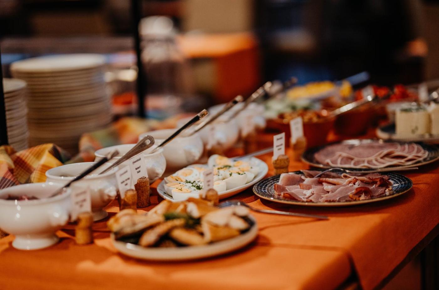 Gäste der Unterkunft Hotel Hüttmann können ein als Buffet angebotenes Frühstück genießen.