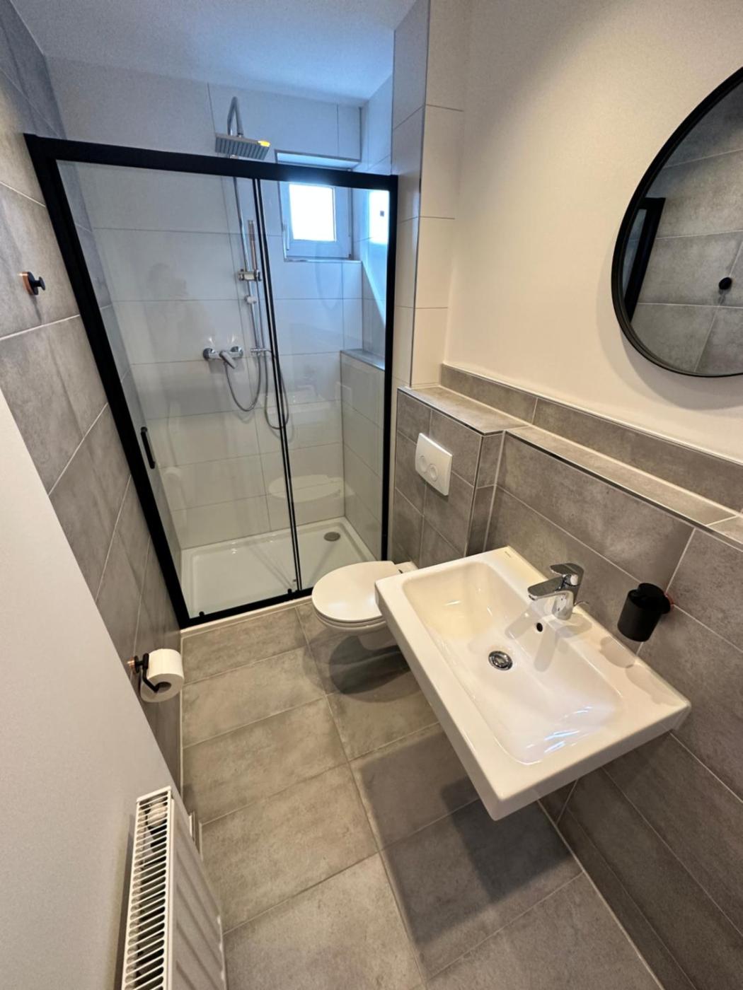 Apartment mit 4 Zimmern. The spacious apartment features a shared bathroom, a washing machine, a private entrance, as well as a seating area with a TV. Guests can make meals in the kitchen that is equipped with a stovetop, a refrigerator, a dishwasher and an oven. The apartment provides a coffee machine, a dining area, tumble dryer along with heating. The unit offers 6 beds.