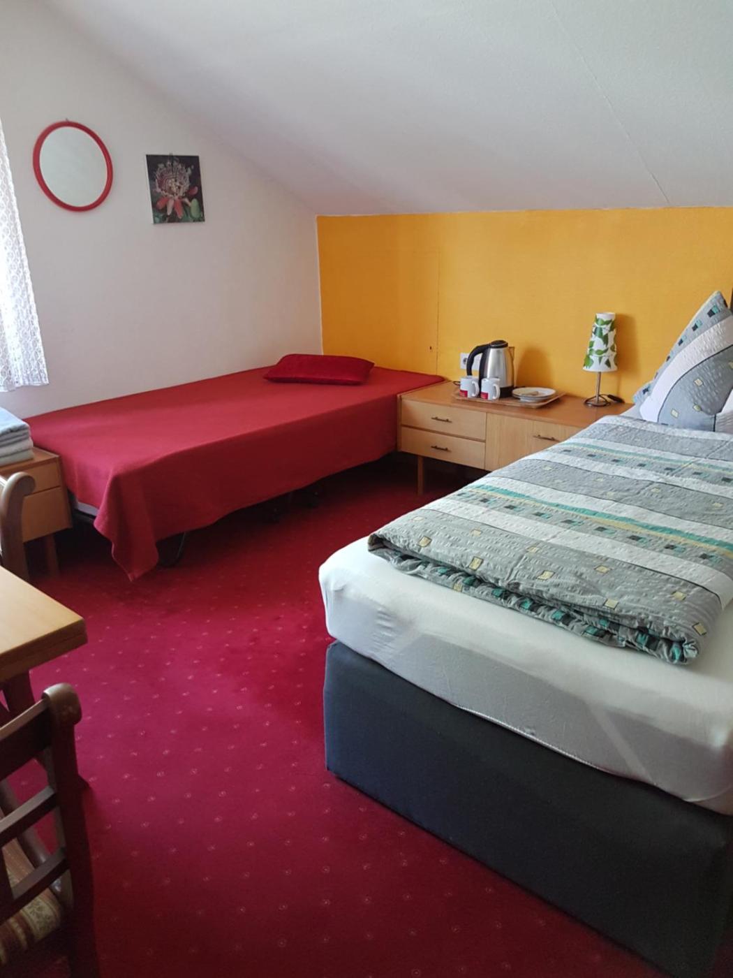 Zweibettzimmer. The twin room offers a tea and coffee maker and a seating area, as well as a private bathroom featuring a shower. The twin room features a dining area, a wardrobe, a carpeted floor along with heating. The unit offers 2 beds.