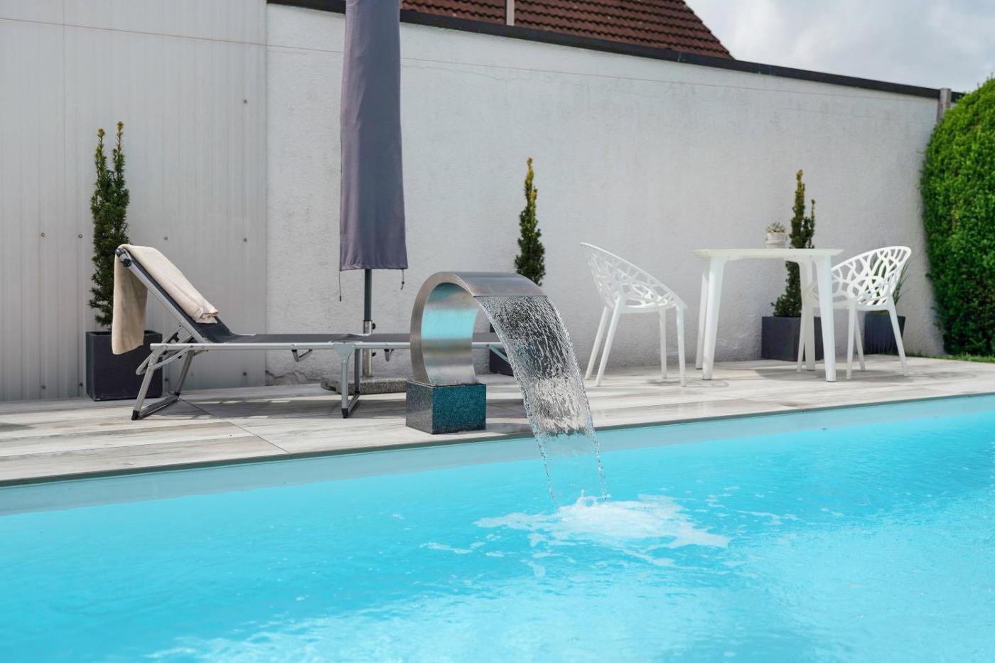Gäste können im Außenpool schwimmen, im Garten entspannen, oder Skifahren oder Fahrradfahren.