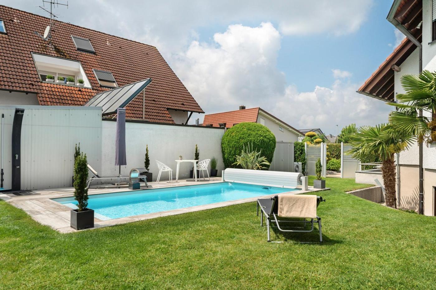 Gäste können im Außenpool schwimmen, Skifahren oder Fahrradfahren oder im Garten entspannen.