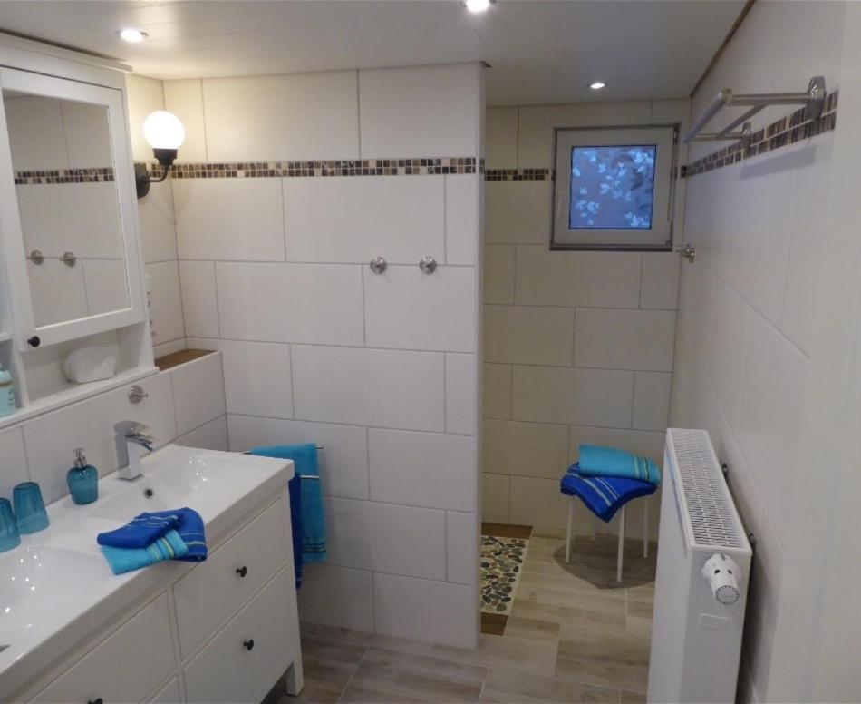 Apartment - auf 2 Etagen. Featuring a private entrance, this apartment comprises 1 living room, 1 separate bedroom and 1 bathroom with a walk-in shower and a hairdryer. The well-equipped kitchen features a stovetop, a refrigerator, a dishwasher and kitchenware. Boasting a terrace, this apartment also provides a tea and coffee maker, a seating area and a flat-screen TV with satellite channels. The unit offers 2 beds.