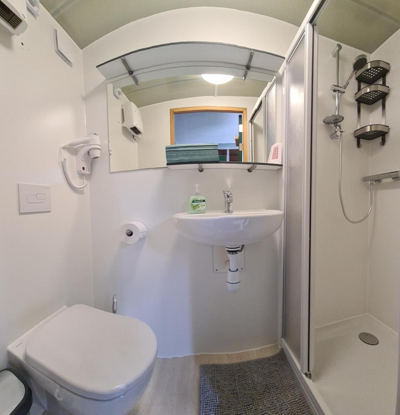 Ein voll ausgestattetes eigenes Badezimmer mit einer Dusche und einem Haartrockner ist vorhanden.