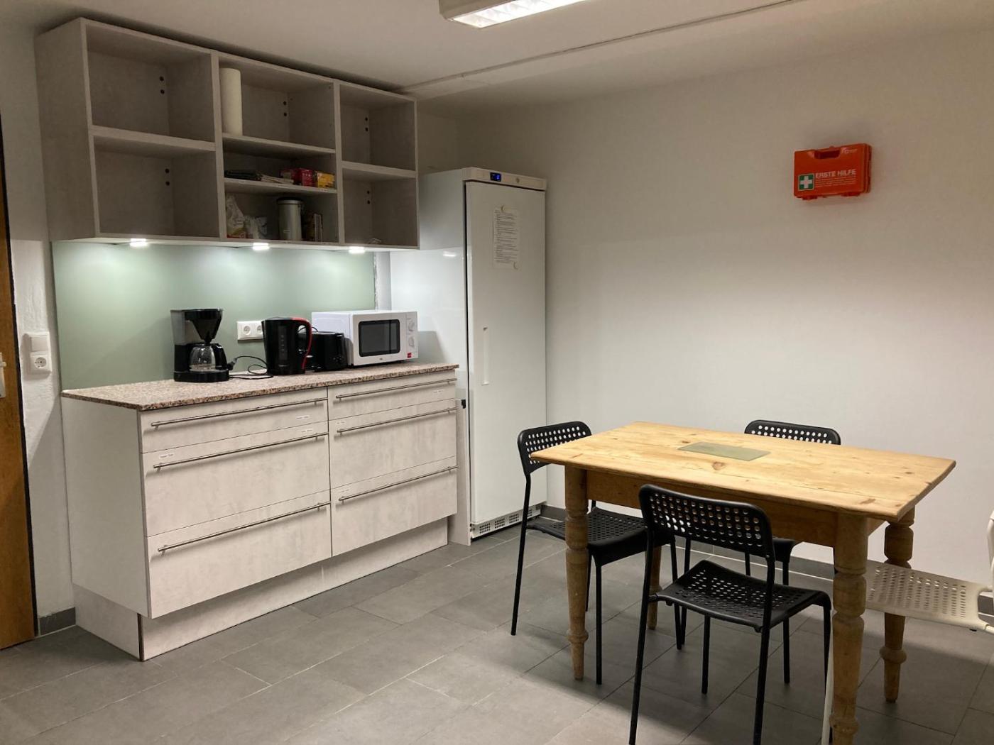 Kleines Einzelzimmer. The single room offers a seating area, a dining area, as well as a shared bathroom featuring a shower and a hairdryer. The well-fitted kitchen has a stovetop, a refrigerator, kitchenware and an oven. This single room features a washing machine, a tea and coffee maker, a flat-screen TV with cable channels and an outdoor dining area. The unit offers 1 bed. ;