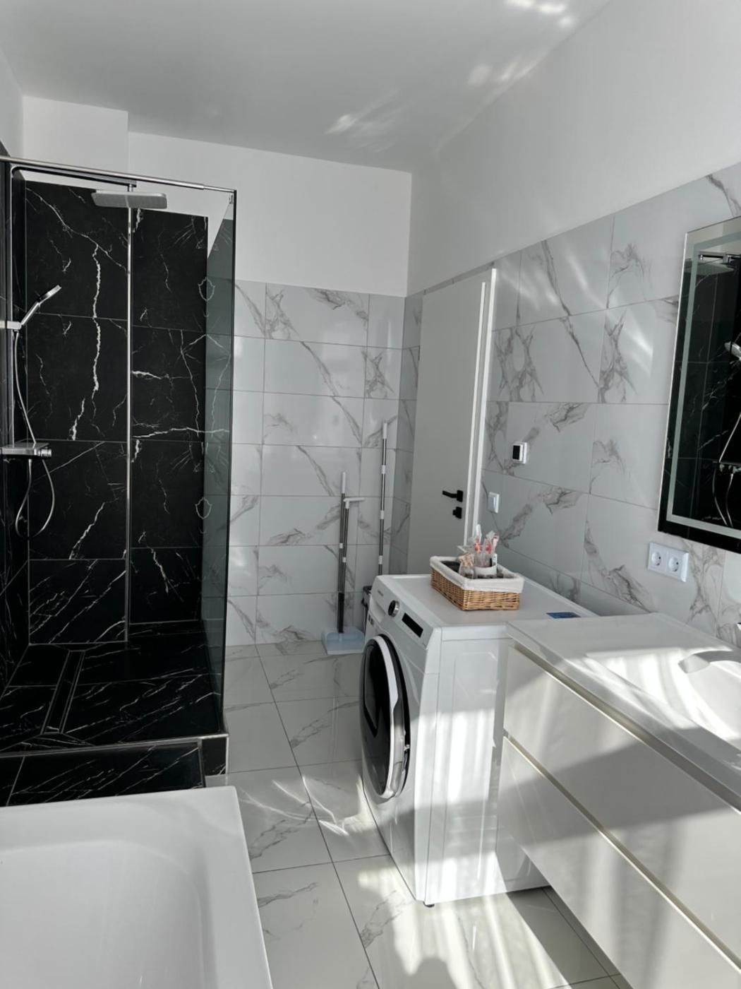 Suite-Apartment. Featuring a private entrance, this air-conditioned apartment consists of 1 living room, 3 separate bedrooms and 2 bathrooms with a walk-in shower and a bath. Guests will find a stovetop, a refrigerator, a dishwasher and kitchenware in the well-equipped kitchen. The apartment also offers a barbecue. The spacious apartment provides a flat-screen TV with streaming services, a washing machine, a tea and coffee maker, a seating area as well as garden views. The unit offers 6 beds.