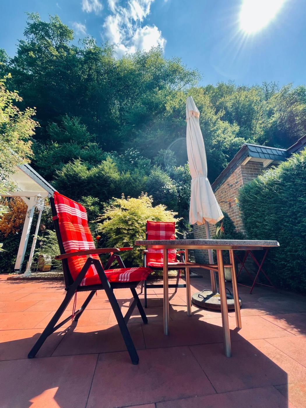 Die Unterkunft Idyllisches Häuschen im Grünen mit Whirlpool besticht durch Gartenblick und Übernachtungsmöglichkeiten mit einer Veranda Patio und einer Kaffeemaschine, ungefähr 41 km von Museumsmeile entfernt. Dieses Ferienhaus bietet außerdem einen eigenen Pool und kostenloses WLAN.