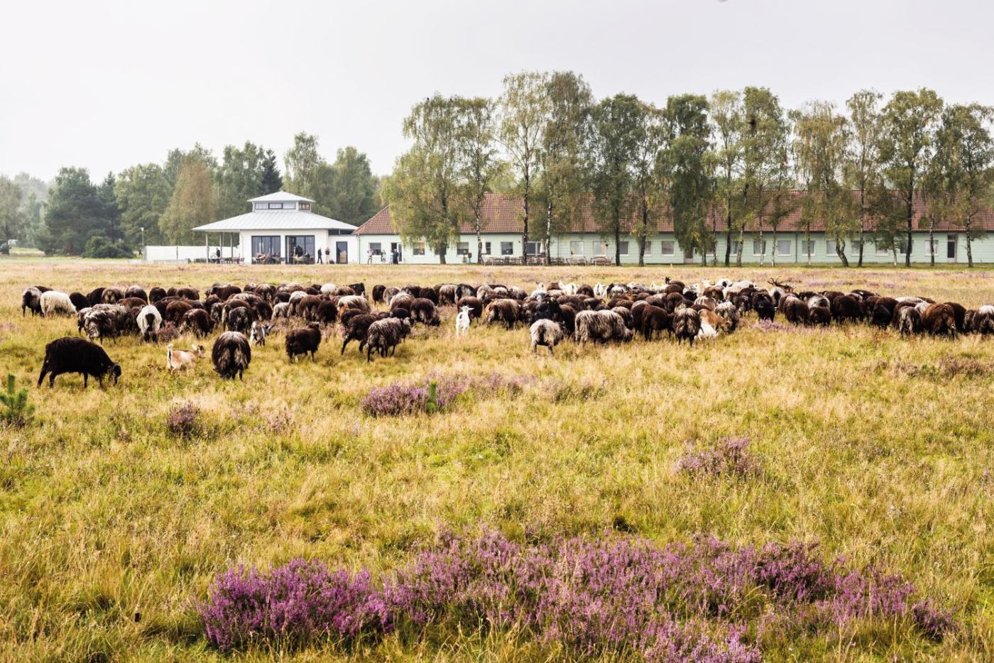 Jedes der hellen, modernen Zimmer im Hotelcamp Reinsehlen verfügt über eine moderne Einrichtung und ein modernes Bad. Entspannen Sie auf der Gemeinschaftsterrasse mit Blick auf das weitläufige Hotelgelände.