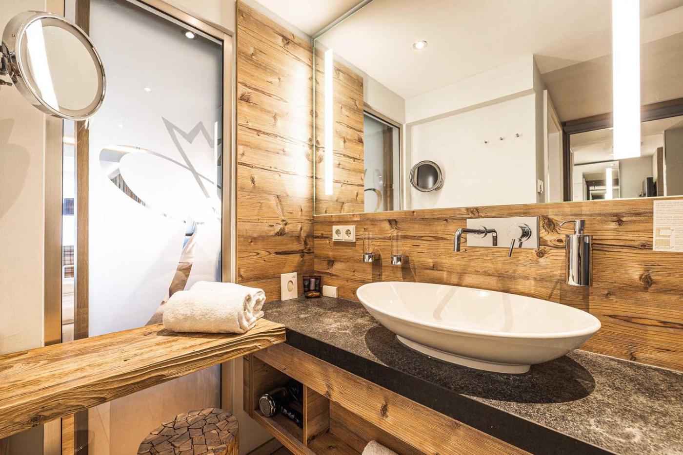 AlpenGlühen Design Junior Suite. Zu den Vorzügen dieser Suite zählt ein Kamin. Diese Suite umfasst 1 Wohnzimmer, 1 separates Schlafzimmer sowie 1 Badezimmer mit einer ebenerdigen Dusche und kostenlosen Pflegeprodukten. Die klimatisierte, schallisolierte Suite mit Bergblick bietet darüber hinaus einen Flachbild-Kabel-TV, eine Minibar sowie Kaffee- und Teezubehör. Die Wohneinheit ist mit 1 Bett ausgestattet. ;
