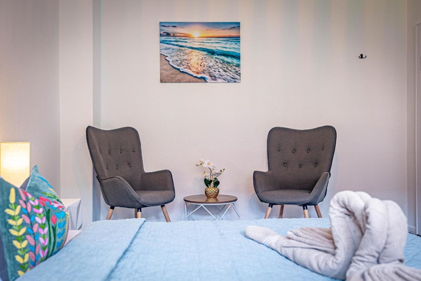 Apartment mit 1 Schlafzimmer. The sauna is a top feature of this apartment. Boasting a private entrance, this apartment comes with 1 living room, 1 separate bedroom and 1 bathroom with a shower and a hairdryer. Guests will find a stovetop, a refrigerator, a dishwasher and kitchenware in the fully equipped kitchen. The apartment also includes a barbecue. Featuring a terrace with garden views, this apartment also features a washing machine and a flat-screen TV with streaming services. The unit has 2 beds.
