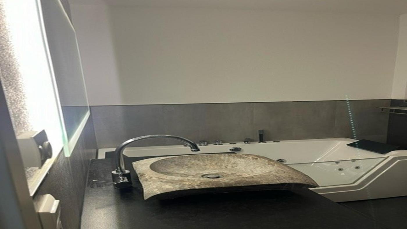 In der Unterkunft Moderne Ferienwohnung Sonnenbühl können Gäste einen Whirlpool nutzen.