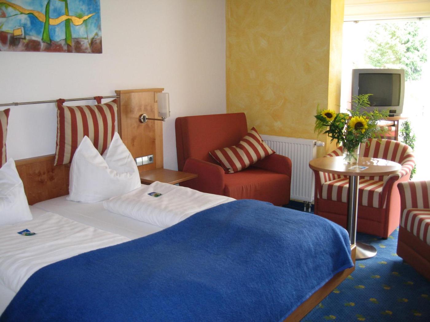 Doppelzimmer. Dieses Doppelzimmer verfügt über einen Sitzbereich, Sat-TV und ein eigenes Bad. ;