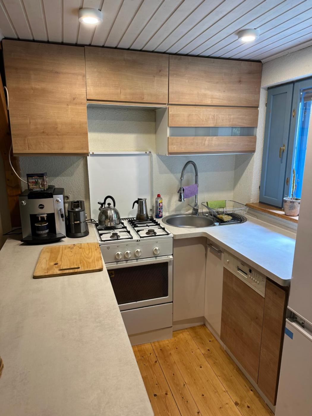 Haus mit 1 Schlafzimmer. This holiday home comprises 1 living room, 1 separate bedroom and 1 bathroom with a shower and free toiletries. In the kitchen, guests will find a stovetop, a refrigerator, a dishwasher and kitchenware. The holiday home is furnished with a desk and a seating area and provides a private entrance, a coffee machine and garden views. The unit offers 3 beds.