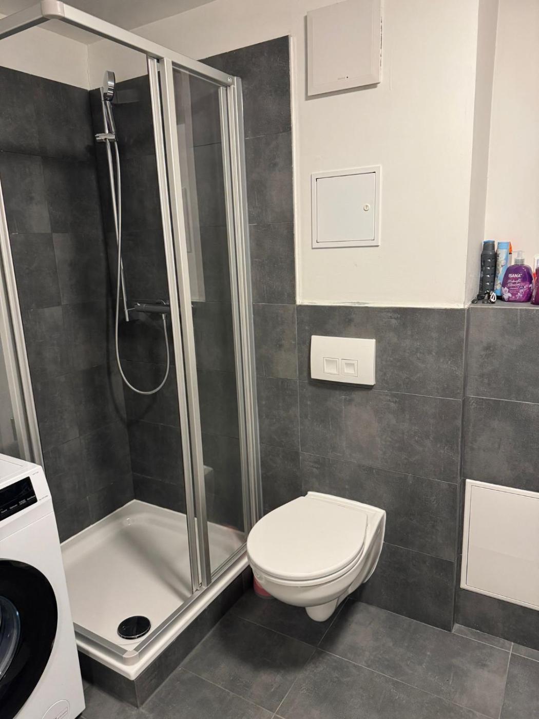 Apartment. This spacious apartment consists of 1 living room, 4 separate bedrooms and 2 bathrooms with a bath and a shower. Guests can make meals in the kitchen that is equipped with a stovetop, a refrigerator, a dishwasher and kitchenware. Featuring a balcony with ancourtyard view, this apartment also provides a washing machine and a flat-screen TV. The unit offers 7 beds.