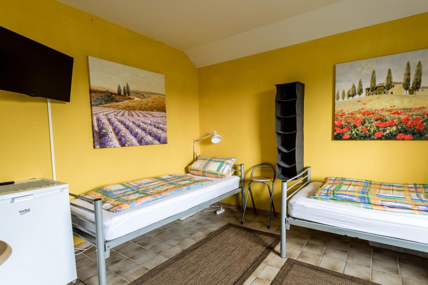 Budget Doppelzimmer. This double room offers a shared bathroom, and tumble dryer. The double room features a washing machine, a wardrobe, an electric kettle, a flat-screen TV with satellite channels, as well as garden views. The unit has 2 beds. ;