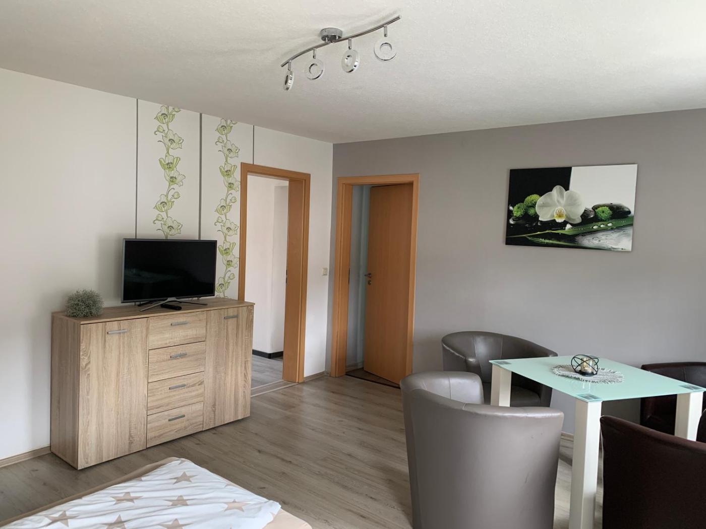 Apartment mit Dusche. Diese Ferienwohnung verfügt über einen eigenen Eingang, 2 Schlafzimmer sowie 1 Badezimmer mit einer Dusche. In der gut ausgestatteten Küche befinden sich ein Kochfeld, ein Kühlschrank, ein Geschirrspüler und Küchenutensilien. Nutzen Sie auch den Grill der Ferienwohnung. Die Ferienwohnung mit Heizung bietet zudem Tee- und Kaffeezubehör, einen Kleiderschrank, Parkettboden sowie einen Flachbild-Sat-TV. In dieser Wohneinheit befinden sich 2 Betten.