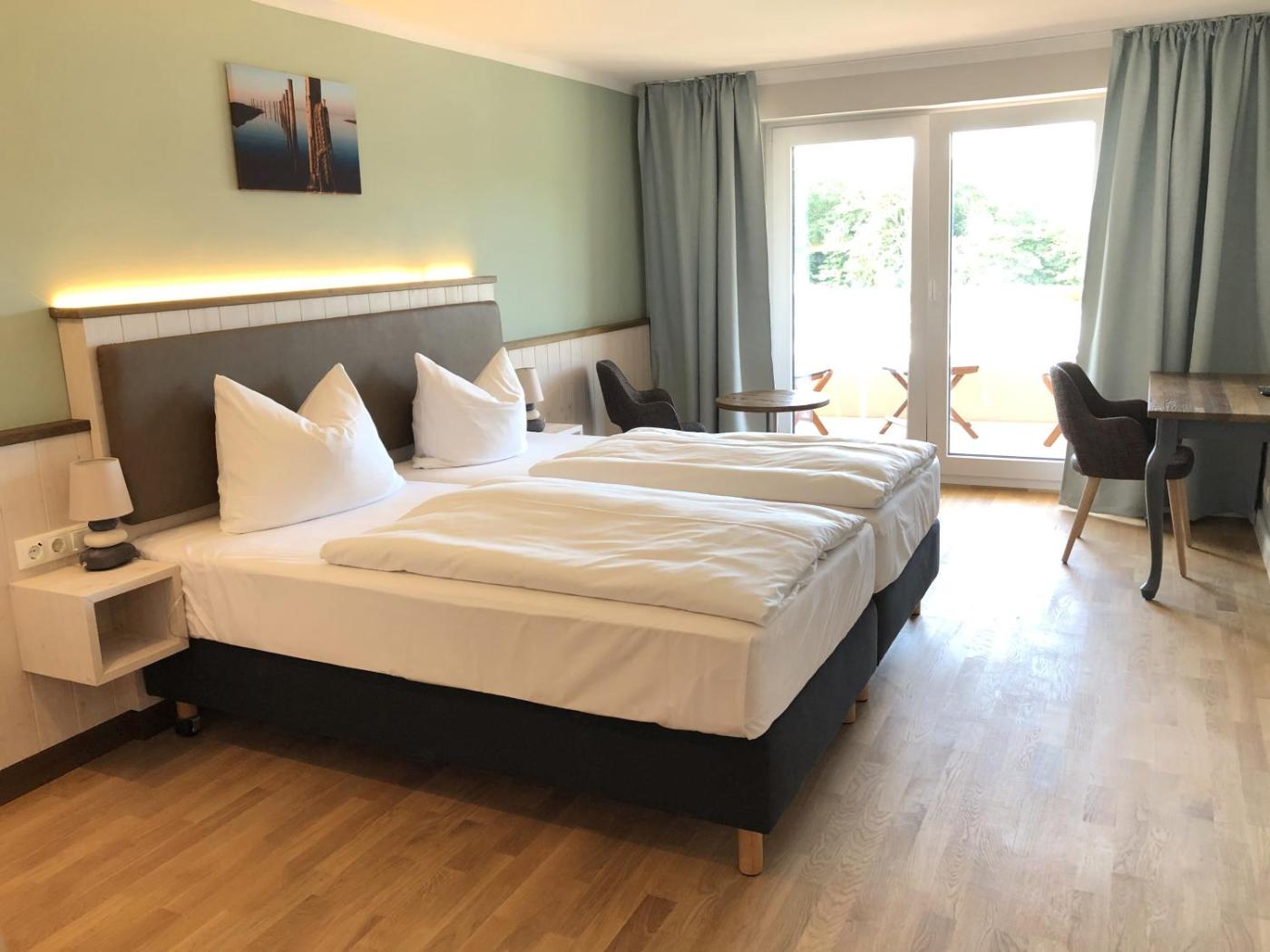 Komfort Doppelzimmer - Wasserseite. Dieses Doppelzimmer verfügt über Parkett, Heizung sowie ein eigenes Bad mit einer ebenerdigen Dusche und einem Haartrockner. Zu den weiteren Annehmlichkeiten des Doppelzimmers gehören schallisolierte Wände, ein Sitzbereich, ein Kleiderschrank, ein Flachbild-Sat-TV und Seeblick. Die Wohneinheit ist mit 1 Bett ausgestattet.