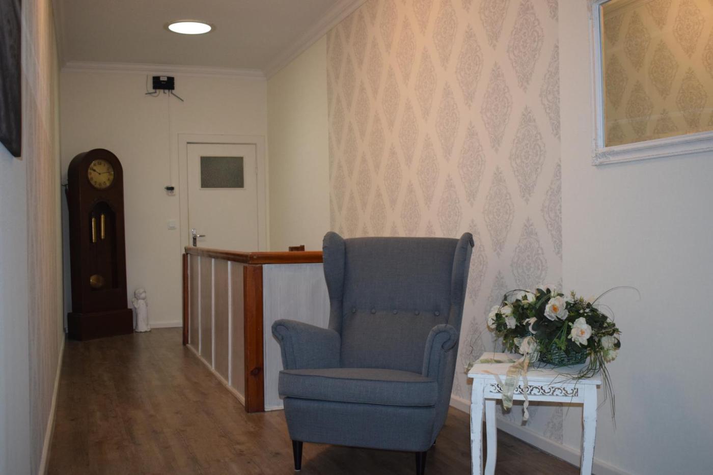Doppelzimmer 1. The double room features a seating area, a wardrobe, as well as a private bathroom featuring a shower and a hairdryer. The spacious double room offers a washing machine, a private entrance, a tea and coffee maker, a flat-screen TV with satellite channels, as well as garden views. The unit offers 1 bed. ;