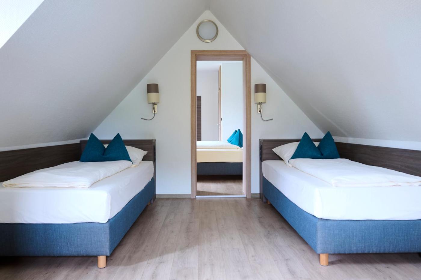 Comfort Vierbettzimmer. Dieses Vierbettzimmer verfügt über einen Flachbild-Sat-TV und ein eigenes Bad. Die Wohneinheit ist mit 3 Betten ausgestattet.