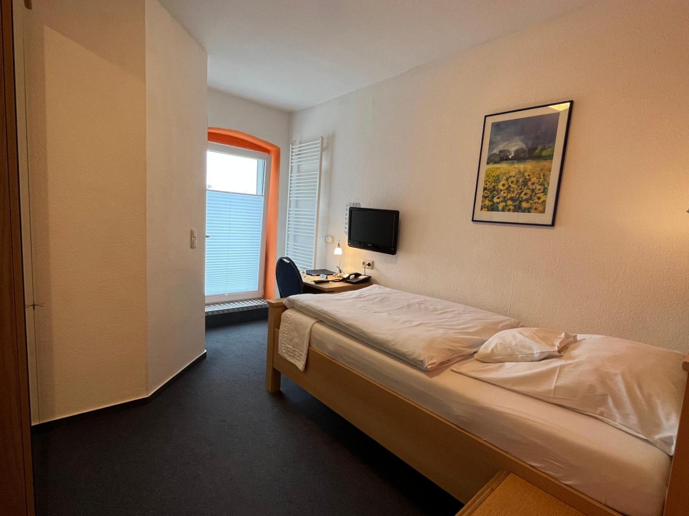 Einzelzimmer. Dieses Nichtraucherzimmer verfügt über ein Bad mit einer Dusche, ein Telefon, einen Radiowecker, einen TV und einen Haartrockner. ;