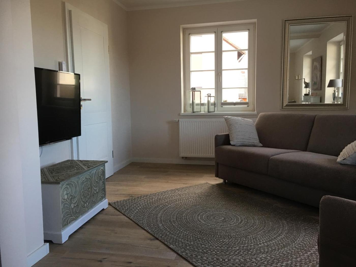 Apartment - Erdgeschoss. Featuring a private entrance, this apartment is comprised of 1 living room, 1 separate bedroom and 1 bathroom with a walk-in shower and a hairdryer. The well-equipped kitchen features a stovetop, a refrigerator and kitchenware. Boasting a patio, this apartment also offers a tea and coffee maker, a seating area and a flat-screen TV with satellite channels. The unit offers 2 beds. ;
