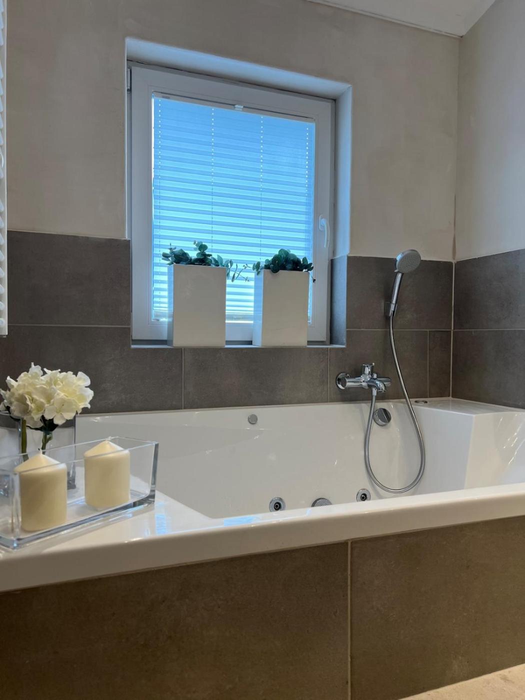 Ferienhaus. This holiday homes special feature is the sauna. Featuring a private entrance, this holiday home consists of 1 living room, 1 separate bedroom and 1 bathroom with a walk-in shower and a bath. Guests will find a stovetop, a refrigerator, a dishwasher and kitchenware in the well-fitted kitchen. The holiday home also offers a barbecue. Boasting a terrace with garden views, this holiday home also provides a washing machine and a flat-screen TV with streaming services. The unit offers 3 beds.
