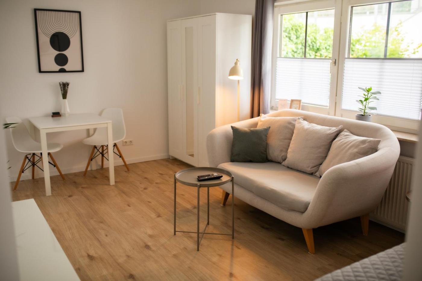 Apartment mit 1 Schlafzimmer. Featuring a private entrance, this apartment comprises a kitchen, 1 bedroom and 1 bathroom with a walk-in shower and a hairdryer. Guests can make meals in the kitchen that comes with a stovetop, a refrigerator, kitchenware and an oven. The apartment provides a washing machine, a coffee machine, a dining area, a flat-screen TV with satellite channels, as well as ancourtyard view. The unit offers 1 bed.