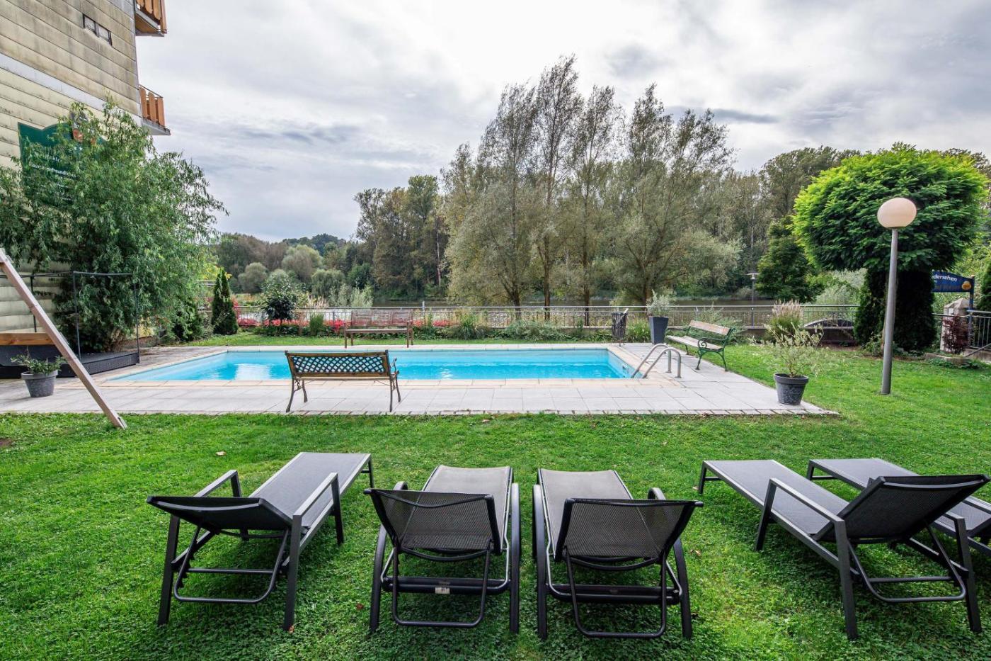Doppelzimmer. Zu diesem Doppelzimmer gehören ein Pool mit Aussicht und eine Sauna. Das Doppelzimmer bietet Ihnen darüber hinaus einen Flachbild-Sat-TV, ein eigenes Bad und einen Balkon mit Flussblick. In der Wohneinheit ist 1 Bett vorhanden. ;