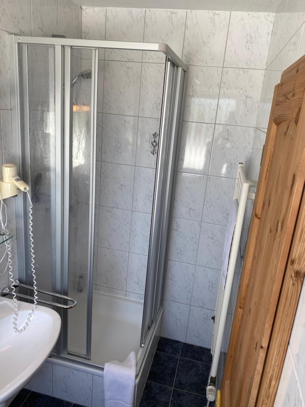 Doppelzimmer. The double room features a carpeted floor, heating, as well as a private bathroom featuring a shower and a hairdryer. The double room provides soundproof walls, a seating area, a wardrobe, a flat-screen TV with satellite channels, as well as garden views. The unit offers 1 bed.