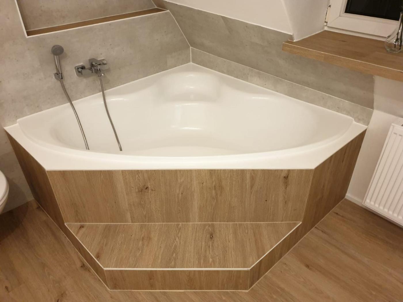 Der Wellnessbereich der Unterkunft Gemütliche Dachwohnung mit kleiner oder großer Dachterrasse nebeneinander besteht aus einem Whirlpool und einem türkischen Dampfbad.